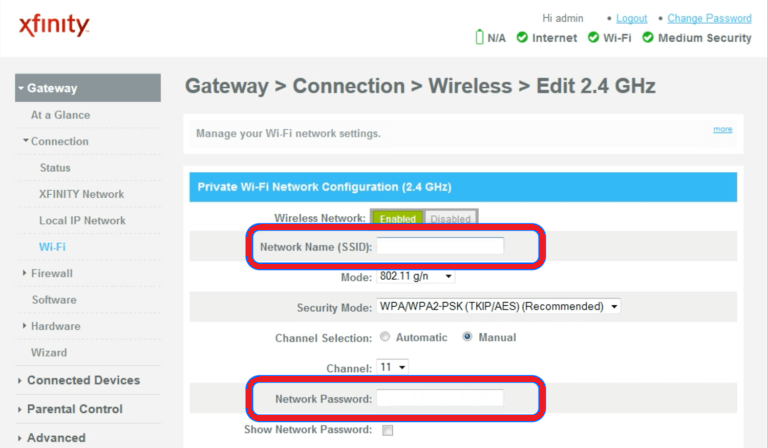Once logged in, go to Wi-Fi settings, however on some router models it may be Wireless Settings, here you can change the network name (SSID) and password.